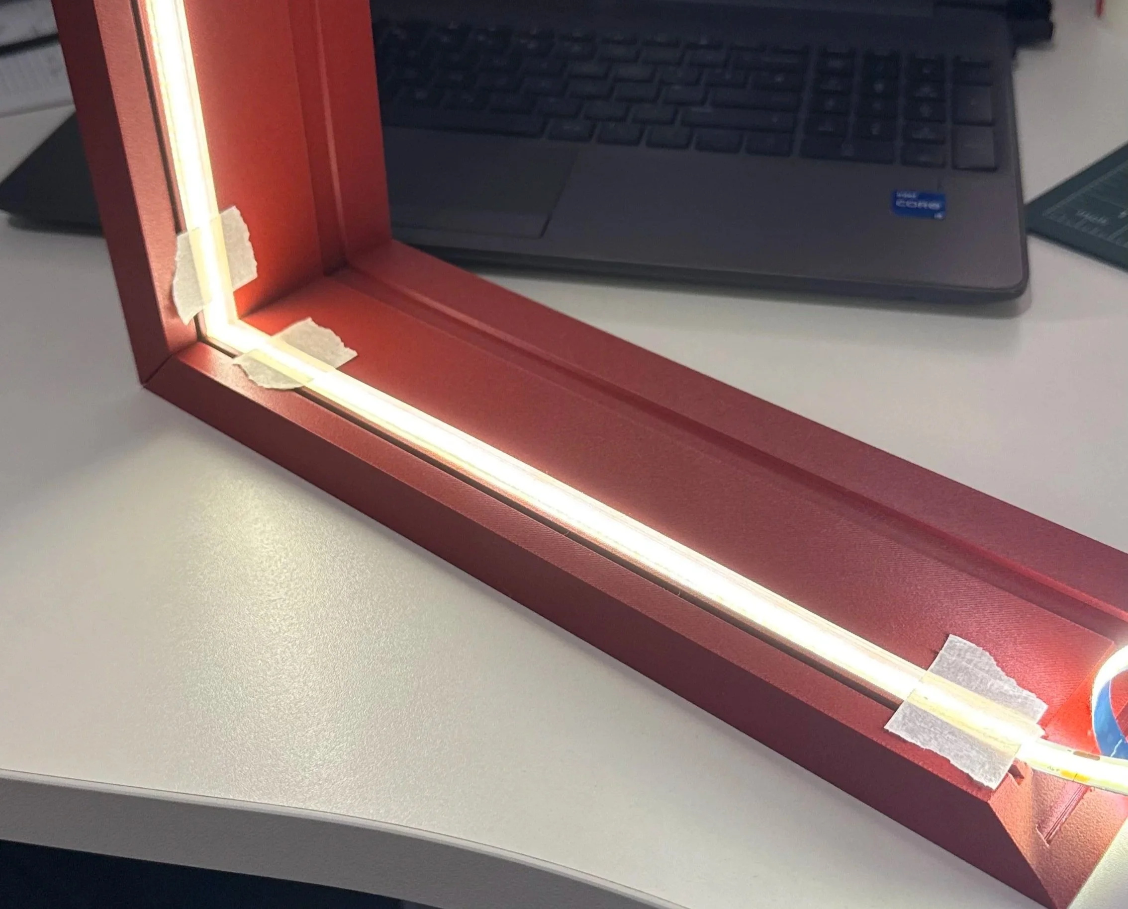 Early prints and testing of LED Strip Integration and material choices